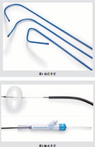 左室隔离装置系统由入路系统、输送系统、左室隔离装置三部分组成。入路系统包括指引导管(图1)和扩张器。输送导管用于将折叠的隔离装置输送到心尖部,其远端有球囊,隔离装置送达心尖后充盈球囊可以固定隔离装置(图2)。隔离装置由自膨胀的镍钛合金骨架、聚四氟乙烯膜和pebax多聚物脚组成。目前有四种规格分别为65mm、75mm、85mm和95mm。每种规格依据脚的长度分为正常长度和短脚的。