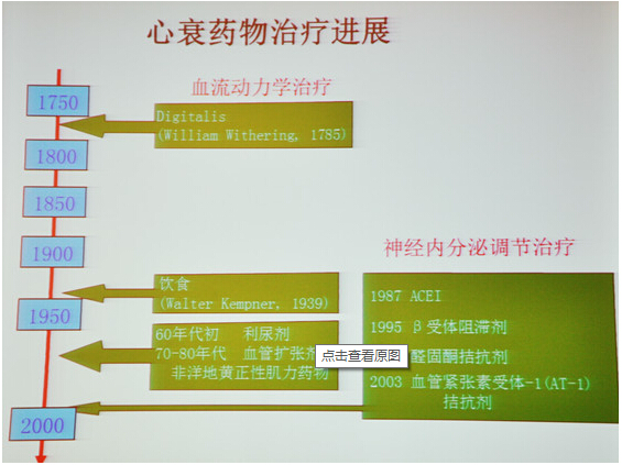 洋地黄是最早用于心衰治疗的药物,随后出现了利尿剂、血管扩张剂与非洋地黄类正性肌力药物,但这类药物只能改善患者心衰症状,而无法真正延长患者生命。直到上世纪90年代,ACEI/ARB、β受体阻滞剂与醛固酮受体拮抗剂的应用才降低了患者病死率,因此神经内分泌抑制剂治疗是心衰药物治疗中的重要里程碑。2014中国心衰指南推荐慢性HF-REF的基本治疗方案为ACEI/或ARB-β受体阻滞剂-醛固酮拮抗剂组成的“金三角”。
