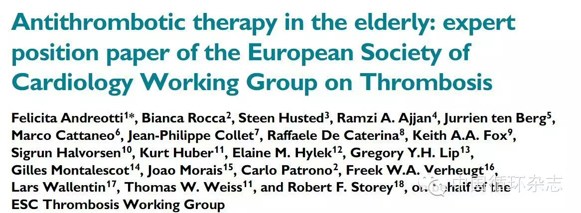 7月10日,欧洲心脏病学会(ESC)血栓治疗小组在《欧洲心脏杂志》在线发表了老年患者抗栓专家共识。