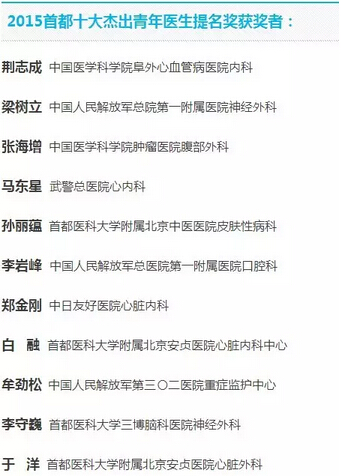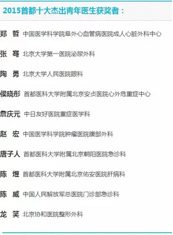 【2015首都十大杰出青年医生】阜外郑哲入选,荆志成提名