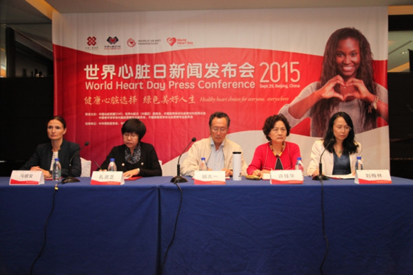 2015年“世界心脏日”当日,由世界心脏日(中国区)组委会、中国心脏联盟、中国医师协会心内科医师分会、中国老年学学会心脑血管病专业委员会以及中国康复医学会心血管病专业委员会联合主办,中华预防医学会、中国控制吸烟协会支持,雀巢(中国)有限公司赞助的“2015世界心脏日”新闻发布会在京召开。世界心脏联盟理事、世界心脏日(中国区)组委会主席、中国心脏联盟主席、中国老年学和老年医学学会副会长、中国康复医学会心血管病专业委员会主任委员、我国心血管领域著名专家胡大一教授,中华预防医学会副会长孔灵芝教授,中国控制吸烟协会常务副会长兼秘书长许桂华教授,北京大学第一医院著名专家刘梅林教授以及“世界心脏日中国官方赞助商”雀巢公司代表—雀巢大中华区奶品业务单位副总裁马丽安女士共同出席会议并致辞。