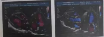彩色超声诊断报告: 左房轻度扩张,三尖瓣少量返流,左室舒张功能减低,EDD 48 mm,EF73%。