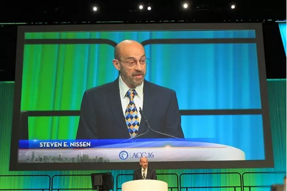 首个针对由于肌肉症状引起、安慰剂对照下“他汀再给药(Statin re-challenge)”后他汀不耐受患者的临床试验在美国心脏病学会(ACC)第65届年会上公布。GUASS-3(Goal Achievement After Utilizing an Anti-PCSK9 Antibody in Statin Intolerant Subject 3)临床试验旨在观察两种非他汀药物:evolocumab vs. ezetimibe(依折麦布)应用于他汀不耐受患者的疗效及安全性。结果证实,新型PCSK9抑制剂evolocumab降低低密度胆固醇(LDL-C)的作用远胜于更为传统的他汀替代处方ezetimibe;试验同时反映两种非他汀类降脂药物所引起的肌肉症状。ACC 2016最新公布临床试验板块发回首席作者、美国克里夫兰诊所Steven Nissen的现场报告,以媒体见面会中的精彩评论。