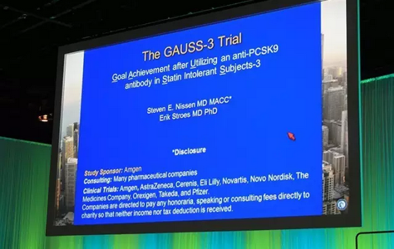 【ACC2016】GAUSS-3研究最新结果:PSCK9 vs. 依折麦布安全有效谁更优?