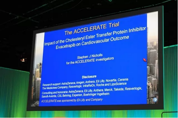 芝加哥当地时间2016年4月3日8:00,阿德莱德大学Stephen Nicholls教授在ACC2016年会上就其领导的ACCELERATE大型调查研究试验(Impact of the Cholesteryl Ester Transfer Protein Inhibitor Evacetrapib on Cardiovascular Outcome),即胆固醇酯转移蛋白抑制剂(CETP)Evacetrapib对心血管事件的影响试验做主题演讲。降胆固醇药物Evaceteapib可降低LDL并显著提高HDL,但ACCELERATE试验的初步分析显示,Evaceteapib并未减少主要不良心血管事件,试验因此提前终止。