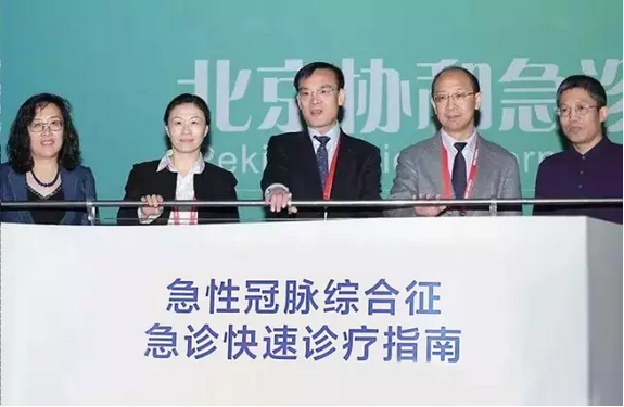 2016年4月17日,北京协和急诊医学国际高峰论坛危重症专场暨《急性冠脉综合征急诊快速诊疗指南》发布会在北京国家会议中心举行。北京协和医院急诊科主任于学忠教授,北京医院急诊科主任张新超教授,首都医科大学附属北京安贞医院急诊危重症中心主任聂绍平教授,首都医科大学附属北京潞河医院郭金成教授,四川大学华西医院急诊科主任曹钰教授等专家出席,并就如何优化急性冠脉综合征患者的急救流程及抗栓治疗发表了演讲,同时还发布了由急诊科、心内科、检验科三大学科首次强强联手重磅推出的《急性冠脉综合征急诊快速诊疗指南》(以下简称《指南》)。