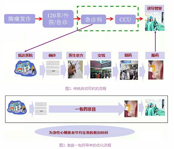 对急性心肌梗死患者而言,及时地给予药物干预并尽早疏通堵塞血管,让心脏重获血液供应,是降低心梗死亡率的关键。开通血管的理想时间是发病的120分钟内,每拖延一分钟,可能导致大量心肌不可逆的坏死,最终引起患者死亡。抗血小板药物使用时间早晚,直接决定患者救治的效果甚至成败。由中国红十字基金会联合中华医学会心血管病学分会,与阿斯利康中国共同发起的“心拯救一包药”暨急性心梗急救一包药(阿司匹林300 mg和替格瑞洛180 mg)公益捐赠项目,让患者在得到确诊后第一时间服用药物,及时启动双联抗血小板治疗,为患者节约了开具处方、付款、取药的时间,在更短时间内实施救治,实现更有力地拯救,真正做到把“患者等药”变成“药等患者”。