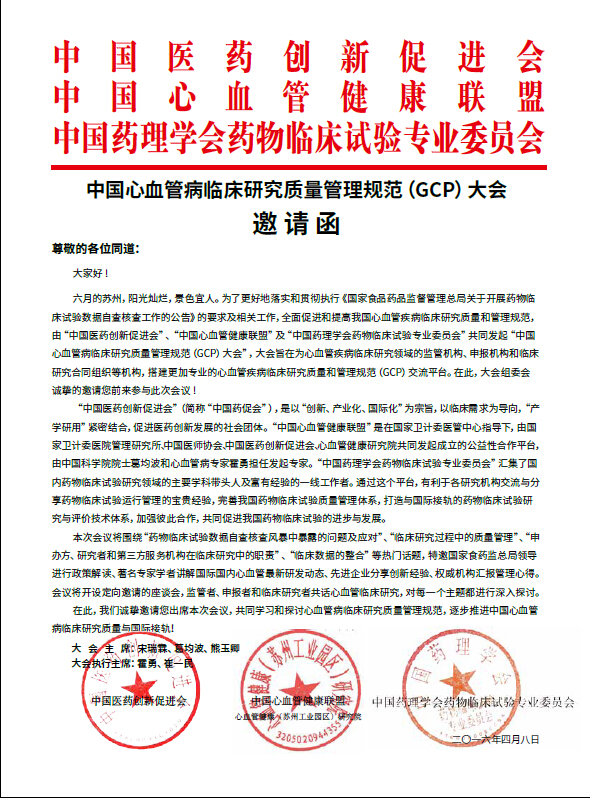 中国心血管病临床研究质量管理规范(GCP)大会邀请函