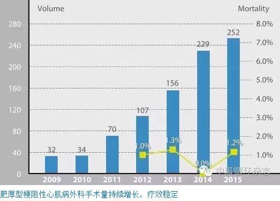 11. 肥厚型梗阻性心肌病外科手术量持续增长,疗效良好。