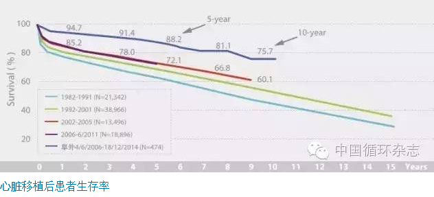 12.自2004年6月至今,阜外医院外科团队在院内完成心脏移植551例,其中2015年完成73例。移植后患者1年生存率为94.7%,3年生存率91.4%,5年生存率88.2%;明显高于国际心肺移植协会(ISHLT)统计的同期生存率。