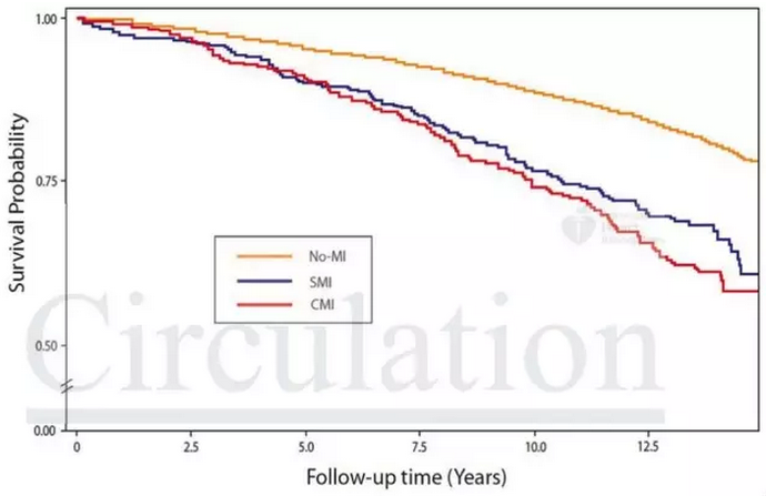 SMI 虽然无声,但是对心脏来说也是一记重击,和 CMI 一样预示不良结果,甚至比 CMI 更差。个人觉得有两点是可以帮助理解的,首先 SMI 缺乏急诊的血运重建,而 CMI 有急诊血运重建的机会,这是关键;其次就是相当部分 SMI 并没有得到及时的冠心病心肌梗死二级预防的治疗。