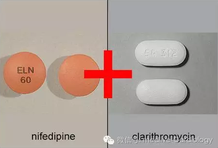 克拉霉素与钙通道阻滞剂(氨氯地平和非洛地平)可引起低血压和急性肾功能衰竭。克拉霉素通过抑制CYP3A4代谢影响硝苯地平的作用,引起低血压。其他大环内酯类药物(包括红霉素)当与钙通道阻滞剂联用时也可参与这种相互作用。阿奇霉素不会抑制CYP3A4,接受钙通道阻滞剂治疗的患者必须服用大环内酯类药物时可考虑。