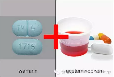 医生往往建议接受华法林治疗的患者选择对乙酰氨基酚的镇痛,因为非甾体类抗炎药(NSAID)可增加胃肠道出血风险。华法林和对乙酰氨基酚的相互作用尚不清楚。对接受华法林治疗的患者应密切监测,开始对乙酰氨基酚治疗后3-5天应对国际标准化比率(INR)进行测定。当接受华法林治疗的患者出现不明原因的 INR下降时,应对患者的对乙酰氨基酚应用情况进行询问。
