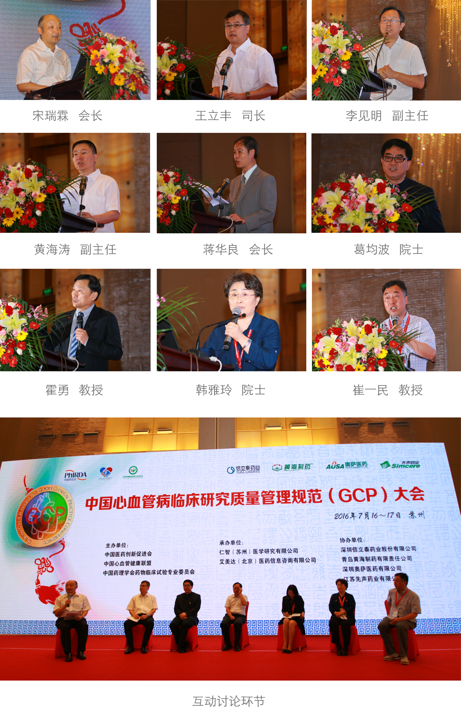 中国心血管临床研究质量管理规范(GCP)大会由中国医药创新促进会、中国心血管健康联盟、中国药理学会药物临床专业委员会共同发起。大会开幕式由中国医药创新促进会宋瑞霖执行会长主持,出席大会的嘉宾有,国家食品药品监督管理总局药化注册司王立丰司长;国家食品药品监督管理总局药品审核查验中心李见明副主任;国家食品药品监督管理总局医疗器械审评中心审评二处史新立处长;苏州工业园区管委会黄海涛副主任;中国医药创新促进会蒋华良会长;中华医学会心血管病学分会主任委员、中国心血管健康联盟主席葛均波院士;中国心血管健康联盟副主席霍勇教授;中华医学会心血管病学分会候任主任委员韩雅玲院士;北京大学第一医院国家药物临床试验机构副主任兼办公室主任崔一民教授。