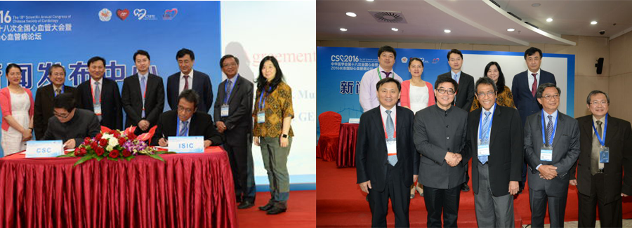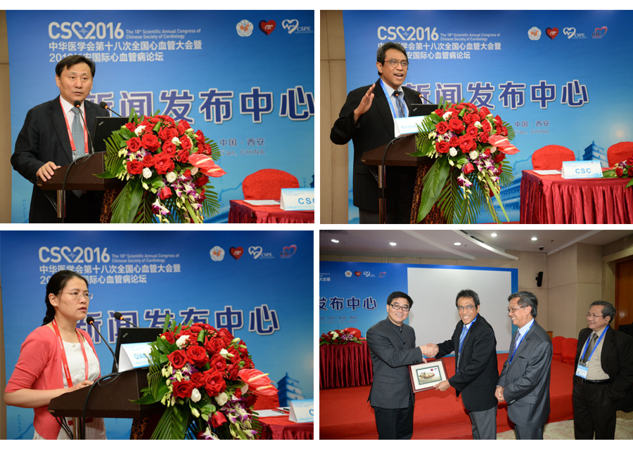 2016年9月8日~11日,中华医学会第十八次全国心血管大会在西安曲江国际会议中心召开。9月11日,在本次大会期间,Muhammad Munawar教授代表印尼介入心脏病学会 (Indonesian Society of Interventional Cardiology – ISIC)、葛均波院士代表中华医学会心血管病学分会 (Chinese Society of Cardiology – CSC) 签署了“中印尼心脏介入培训项目”协议及谅解备忘录。中国心血管健康联盟主席、中华医学会心血管病学分会主任委员、复旦大学附属中山医院心内科主任葛均波院士,中国心血管健康联盟副主席、心血管健康(苏州工业园区)研究院院长、北京大学第一医院心内科及心脏中心主任霍勇教授,复旦大学附属中山医院心内科副主任钱菊英教授,广西医科大学第一附属医院心内科主任李浪教授,中国心血管健康联盟执行秘书长曾文明先生,赛诺医疗科学技术有限公司CEO孙箭华先生和十多家专业媒体及大众媒体全程参与了此次新闻发布会的直播和现场报道。