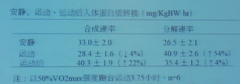 耐力运动时机体的蛋白质存在净降解