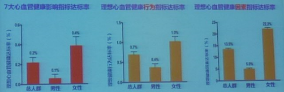 现有调查分析结果显示,中国成人理想心血管健康达标现状不容乐观: