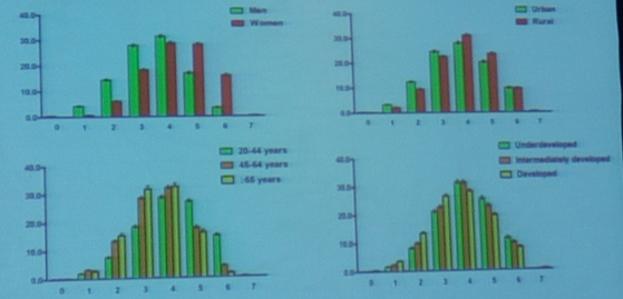 不同性别、年龄、地区、经济水平分组,心血管健康影响指标达标个数分布: