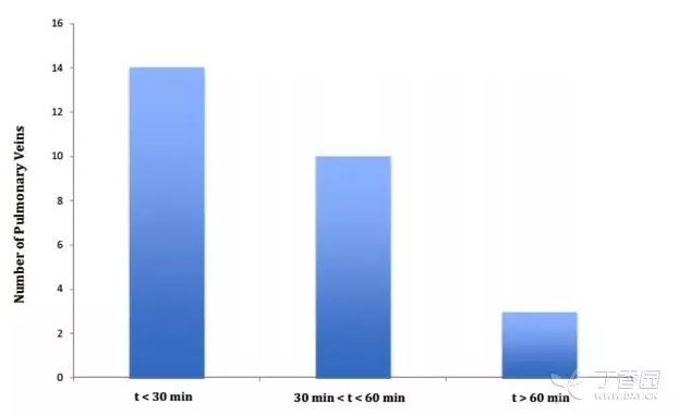 图 1 腺苷试验中肺静脉分离术后电传导恢复的时间