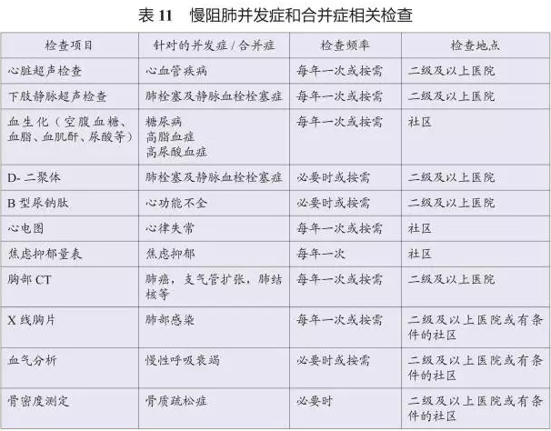 慢阻肺患者常伴有合并症及并发疾病,需要定期检查(表11)。