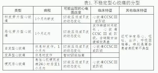 Ⅰ:新发生心绞痛或原有劳力性心绞痛加重,心电图表现为心绞痛发作时ST段下移≥1mm,但持续时间<20分钟。