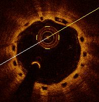 另OCT可鉴别红、白血栓,指导复杂病变的支架植入,评估术后即刻支架扩张、贴壁不良、血管壁损伤,随访了解支架新生内膜覆盖、支架内再狭窄和新生动脉粥样硬化斑块,这些都直接关系到患者治疗效果和长期的临床安全。支架内长血栓,常导致血管的急性闭塞,心肌梗死或猝死,造成灾难性的后果。有研究发现,急性和亚急性血栓发生的主要原因有支架扩张不全、贴壁不良、边缘夹层、支架断裂、残余狭窄等。晚期获得性支架贴壁不良和患者发生致命性并发症(非常迟发的支架内血栓导致的急性心肌梗死)有一定的关联性。