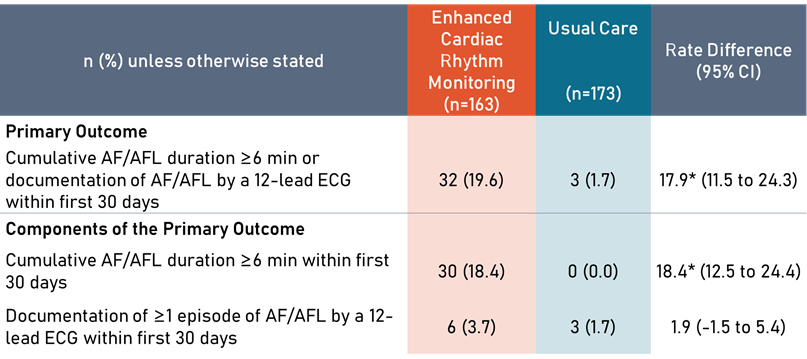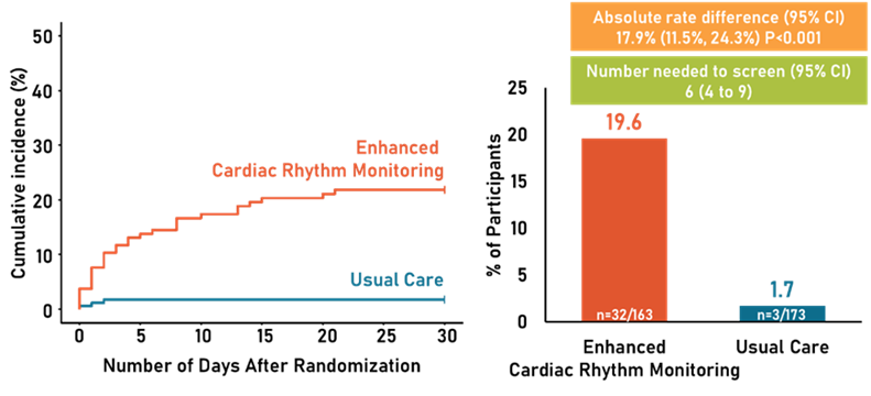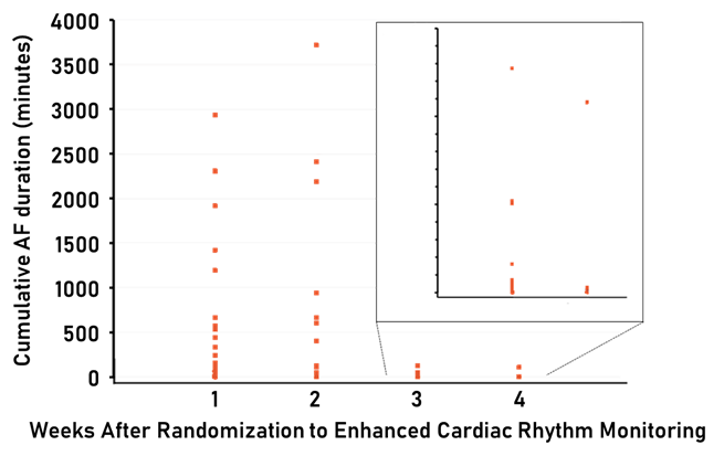 在术前或出院前无AF病史并且存在高卒中风险的心脏手术后患者中,持续心律监测策略揭示了未认识到的、潜在的、可采取措施加以干预的POAF负担。本研究还发现,心脏术后的POAF不只发生于住院期间,出院后的长时间内都有可能发生AF。这些数据有助于为制定监测、干预此类患者的AF的临床实践指南提供信息。