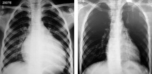 图2 患儿术后1年X线胸片