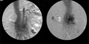 血管外科及心脏内科医师会诊后,决定为患者进行阶段式血管栓塞治疗。但在经股动脉进行血管造影时,患者出现下腹部及大腿麻木感,若进行血管栓塞恐伤及神经,有致下半身瘫痪的危险,于是改为内科治疗,控制心力衰竭症状。