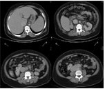 对患者进一步行腹主动脉血管造影(图3)检查,未发现肾血管狭窄现象,但检查中,显影剂注射入腹主动脉后,快速流向脊髓动脉而非肾动脉,并回到下腔静脉,显示患者动静脉畸形(AVM),将血液由脊髓动脉分流至下腔静脉,而此动静脉畸形范围包含整个下腹部。 该患者最后被确诊为腹主动脉动静脉畸形导致心衰而使肾血流减少。