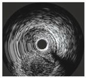6.在钢丝不能确定在血管真腔时,可以在 IVUS指导下寻找真腔;如果闭塞发生在血管分支附近,也可以在IVUS指引下穿刺斑块寻找真腔。