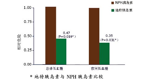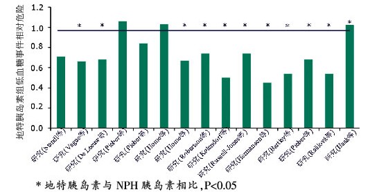图2 与NPH胰岛素相比,地特胰岛素在同等降糖基础上明显降低全部和夜间低血糖风险