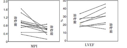 图3 CRT改善心肌工作指数(MPI) 图4 CRT改善左室射血分数(LVEF)