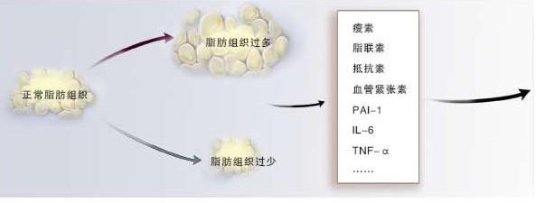 传统观点认为,脂肪组织只是一种疏松结缔组织,它的主要功能是以脂肪的形式储存过多的能量、产生热量以及对组织起缓冲作用。但现在的研究证明,脂肪组织与脑垂体、胸腺和肾上腺等组织一样能够分泌多种生长因子或激素,如瘦素(leptin)、肿瘤坏死因子(TNF)、白介素6(IL-6)、血纤溶酶原激活物抑制剂1(PAI-1)、脂联素(adiponectin)、抵抗素(resistin)和血管紧张素(angiotensin)等,从而参与或调节多种生理功能。除此之外 ,脂肪组织还可表达各种生长因子或激素受体,以接受其他系统的调节,如神经内分泌系统和免疫系统。因此,脂肪组织可通过整合调控网络来参与能量代谢、神经内分泌系统和免疫功能的调节,不再仅仅是一种结缔组织,而是一个内分泌器官。