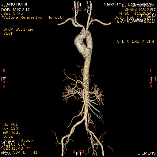 图2:CT三维重构图示钙化主要累及升主动脉、无名动脉和双侧颈动脉