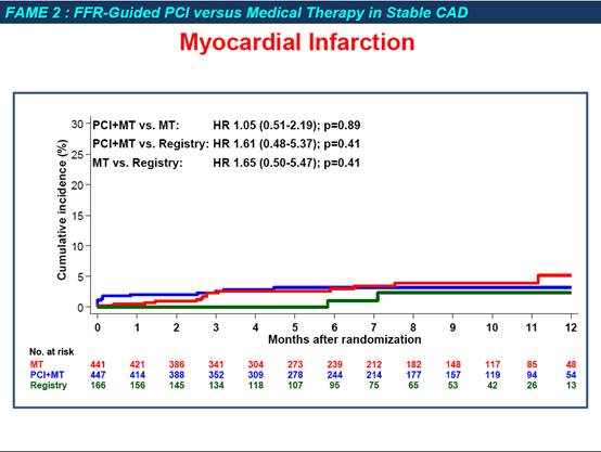实际上,FAME II试验在2012年1月提前结束。主要原因是在随机研究组中,实施PCI联合MT的患者,恢复效果明显优于单纯药物治疗组,出于人道主义和医学伦理的考虑,试验提前结束。