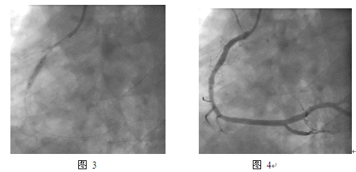 2009年5月,患者发作活动时胸痛,于当地医院冠造右冠支架内重度狭窄,于原来的2枚支架之间再次置入1枚SES。