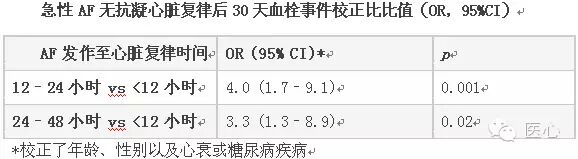 列队研究示:采取无抗凝急性房颤心脏复律预防血栓事件,越早越好