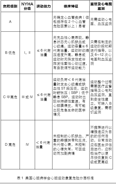 总之,AMI 的运动康复训练应因人而异,运动康复前 必须实行精确医学评估和个性化危险分层,运动时的血压、心率、心律、心肺参数均提示心脏康复的实施风险, 需从简单安全、低强度运动开始,逐渐增加,强调监测和随访,需贯彻心脏康复终身化原则,让 AMI 患者真正 从心脏康复中获益。