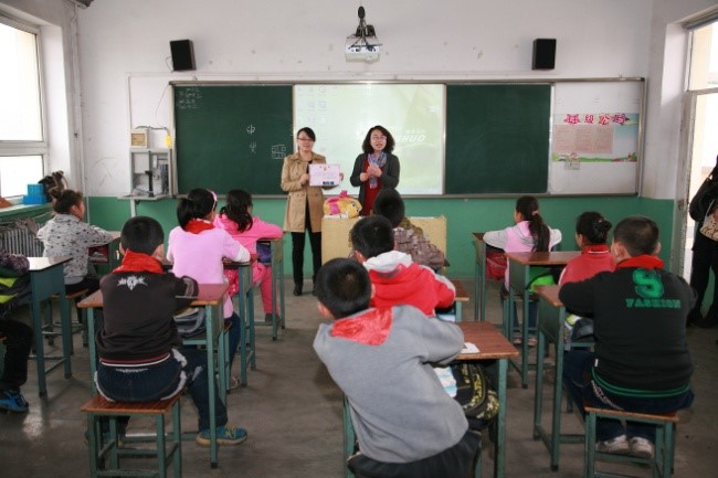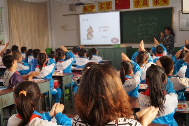 参与研究的小学校学生在听健康教育老师讲课