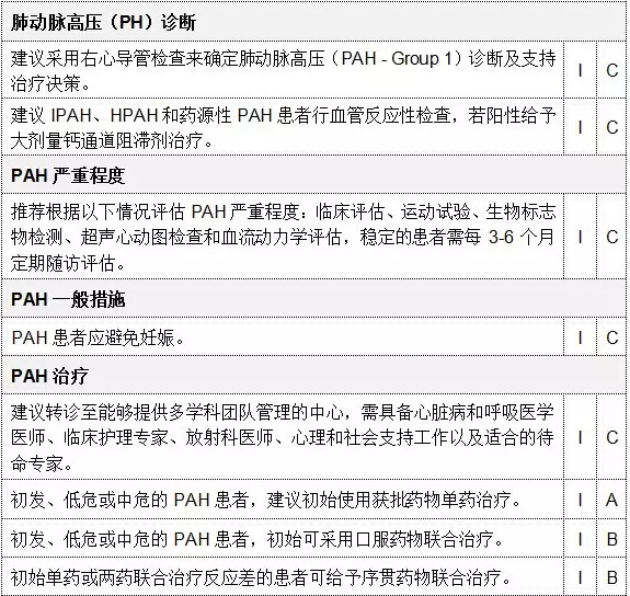 ESC最新肺动脉高压指南:核心推荐(图解)