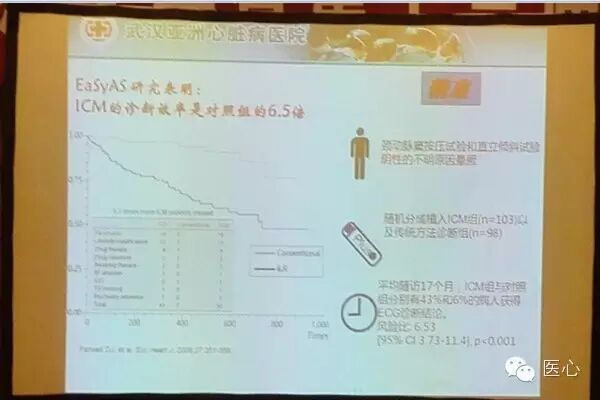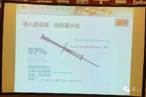 ICM是一种用于记录皮下心电图,可自动激活和由患者激活的植入系统;适用于:有临床症状或状况,处于心律失常风险增加状态的患者,经历过短暂症状,可能提示有心律失常的患者。ICM在国外应用越来越普遍,2009年ESC/HRS晕厥指南指出,对于晕厥频率大于每周一次的患者使用Holter监测(Ⅰb);植入期间可能反复晕厥的低危患者采用可植入式循环记录仪(ILR)进行监测(Ⅰb);为综合各种检测手段后仍未查明原因的高危患者选择ILR进行监测(Ⅰb)。目前ICM主要包括Reveal XT和已获CFDA批准的Reveal LINQ(见图8)。RevealEaSyAS研究(见图9)和PICTURE研究(见图10)均证实ICM诊断能力更强,检出率更高,更精准,其主要原因在于器械房颤算法可以精确监测出99.1%的发生过房颤的患者,简化的植入流程以及重新设计的氮化钛涂层电极保证了高保真的心电信号。ICM极大降低了医生浏览患者事件的负担,假阳性事件降低46%。LINQ的体积较小、ECG存储时间较长、植入工具更简单及操作更简单(见图11、12、13、14)。以下是植入ICM的两例。