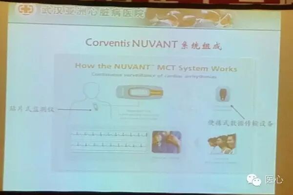 NUVANT系统是最早的MCT系统,适用于监测各类心律失常,包括室上性心动过速(如心房颤动、心房扑动、阵发性室上性心动过速)、室性心律失常,心动过缓和传导障碍。该系统的组成分为贴片式监测仪和便携式数据传输设备(见图4),其使用方法见图5,收集心电数据包括心率≥130 bpm,心率≤40 bpm,心跳骤停≥3 s,房颤及室速/室颤。同时,NUVANT也可给出详细的心电图分析报告。武汉亚洲心脏病医院已经开展了MCT上市前临床研究,以下是两例病例: