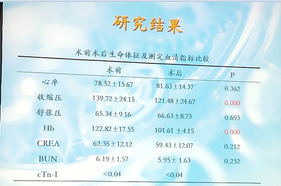 围术期,3例患者术后出现胸痛、胸闷、心慌,查心电图提示广泛导联ST段压低。查体:<90 / 60 mmhg,Hb:6.0 g/L,考虑失血性贫血,经输血及补充血容量后症状好转,心电图转为正常。无急性心肌梗死,心衰发生。2例出现下肢静脉血栓。术后半年结果显示,主要不良事件发生率较低。无心脏性死亡、无心肌梗死、无靶血管血运重建,心绞痛发生率0.87%(见图4)。