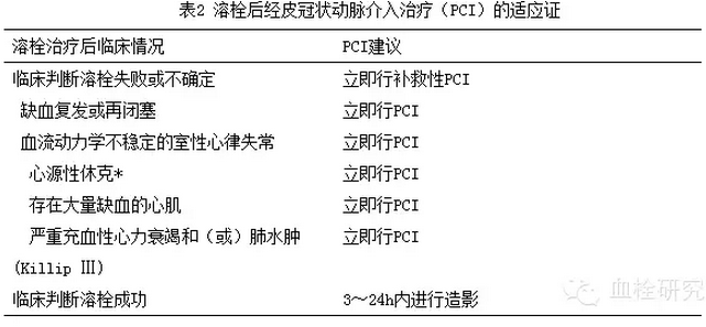 溶栓治疗后是否进行PCI,需要判断溶栓疗效和临床情况(表2)。