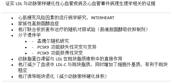 2015年,急性冠脉综合征的病理生理学研究与心血管病的流行病学、诊断及预后领域也取得了重要进展。同样,降脂治疗也取得了类似的进步。INTERHEART研究发现,导致动脉粥样硬化的胆固醇会随着LDL进行转运;在这一背景下,近期的基因研究发现再次加强了LDL是动脉粥样硬化及心血管病罪魁祸首的证据基础。此外,IMPROVE-IT试验已经发现了一种不同于他汀治疗的新型降脂机制,并可转化为临床获益,即依折麦布在他汀治疗基础上通过抑制肠道吸收胆固醇来减少患者体内的LDL-C,最终改善了受试者心血管预后(严重血管事件减少7.2%)。基线LDL-C较低(1.8 mmol/L或70 mg/dL)者经依折麦布联合辛伐他汀治疗后LDL-C进一步降低24%,受试者心血管获益与LDL-C降低程度成比例;受试者心血管死亡率没有改善,可能由多种因素导致,例如研究者尚未在试验后对患者进行长期随访。实际上,越来越多的证据表明LDL-C降低能够在积极治疗后继续为患者带来获益,尤其是在降低心血管死亡率方面。显然,降脂治疗领域正在出现一种新范式——未来的降脂治疗或许能够通过诱导病变趋于稳定或逆转病变来改变动脉粥样硬化性心血管疾病及其血栓并发症的病理生理进程。