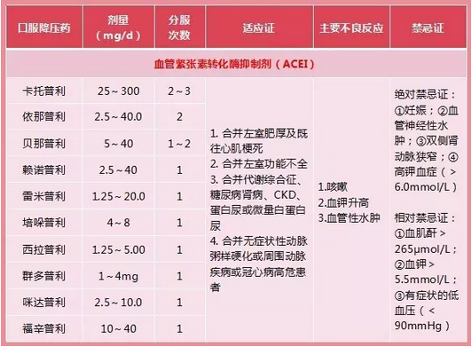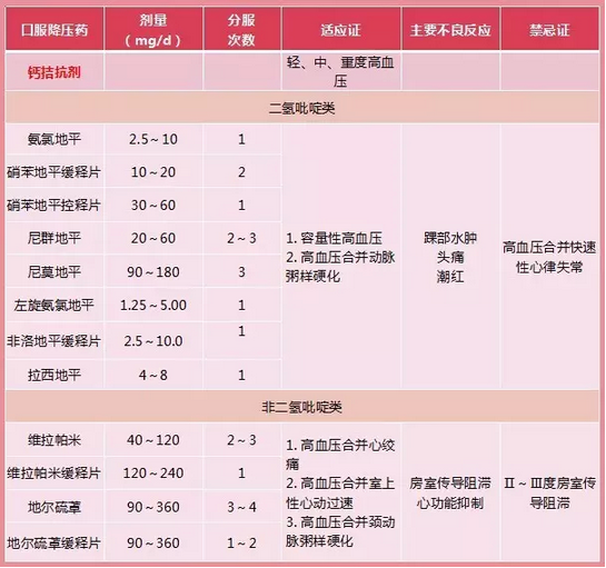 合理和规范化地使用降压药物是高血压管理的重要环节,也是降低脑卒中、急性心肌梗死和肾脏疾病等并发症和死亡风险的重要保证。抗高血压药物作用于血压调节系统中的一个或多个部位而发挥作用,可根据药物主要作用部位的不同而进行分类。临床常用的降压药包括钙拮抗剂、血管紧张素转换酶抑制剂(ACEI)、血管紧张素受体拮抗剂(ARB)、利尿剂和β受体阻滞剂5类及单片复方制剂,均可用于高血压的初始治疗和维持治疗。以下为您盘点各种降压药的具体用法、适应证、禁忌证等。