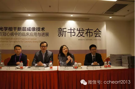 当日举行的新书发布会由张瑶俊教授及部分副主编成员——卜军、郭宁和叶飞教授共同主持。有着“光学活检”之称的光学相干断层成像(OCT),其分辨率被认为是目前分辨率最高的血管内成像技术,其不仅对动脉粥样硬化斑块的清晰观察、支架置入术后血管修复的评价,以及优化冠脉介入治疗的指导均有巨大潜在价值,除此之外,还对新型材料装置如生物可吸收支架(BVS)的优化使用有着独特指导优势。