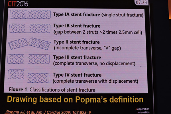 冠状动脉内支架断裂(stent fracture, SF)作为冠脉支架置入术后一种少见且严重的并发症,以往并未受到介入医师的足够重视。然而,随着第二代药物洗脱支架(DES)在临床上的应用越来越多,关于第二代DES准确的SF发生率和SF与临床事件的关系仍不清楚,因此研究DES的SF发生率和患者临床结果被临床医生提上日程。近日,在CIT2016大会“特色临床研究”专场上,南京医科大学附属南京第一医院陈绍良教授向大家报道了由他牵头的从4个中心6555例患者16482个药物洗脱支架数据中分析支架断裂的发生率和患者临床结果的研究结果,这一结果在3月18日同步发表在JACC-Cardiovasc Interv上。