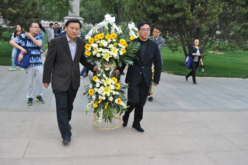 早晨7点40分,霍勇教授、傅向华教授、葛均波院士、李建平教授缓缓走向白求恩和柯棣华纪念碑,敬献花圈、整理挽联并鞠躬致意。随后,全体参加人员向烈士默哀1分钟,现场氛围庄重肃穆。
